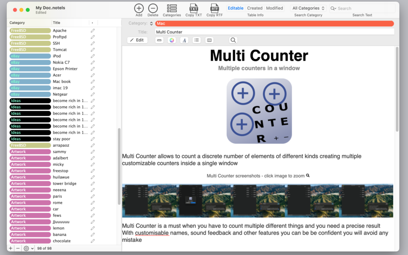 NoteList is a multi format notes collector where you can save notes in text or RTF format with images included.