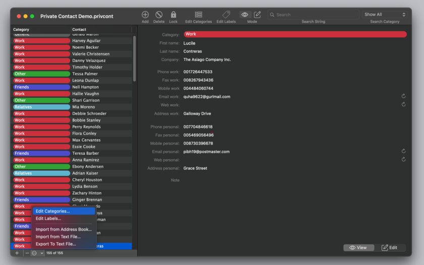 Private Contact is an application to manage on Mac an always encrypted address book to keep your contacts really private and protect your privacy.